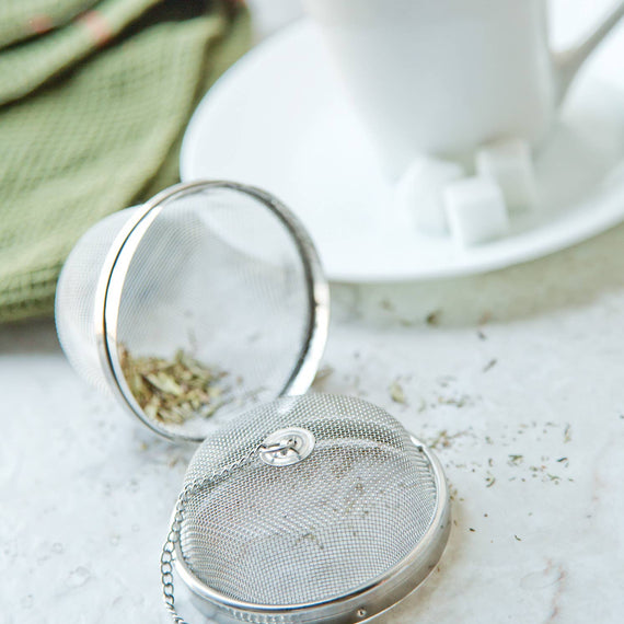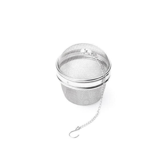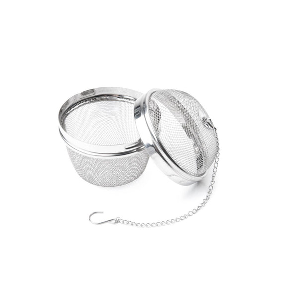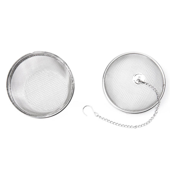 Create your own bouquet garni! Replace those garni bags with this reusable Spice Infuser for utmost convenience. This infuser features a large 3-inch diameter and is constructed of 18/8 stainless steel mesh for durability and easy cleaning. Dishwasher safe! Fill the ball with fresh herbs, spices, or loose leaf tea to add delicious flavor to soups, stews, broths, gravies, large quantities of tea, spiced cider, and more. The infuser comes equipped with a chain and hook, which together let the ball effortlessly hang from your teapot or panhandle for hassle-free removal when your herbs have fully steeped. Make large batches of your favorite drinks and dishes with large flavor.