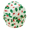 Time to get festive with these Mini Holly Cupcake Liners. 75 per pack. Place in muffin tin and fill with your favorite batter. Ideal for small pastries, candies and appetizers. 1.25" diameter x .75" high. Paper. Disposable. Greaseproof.