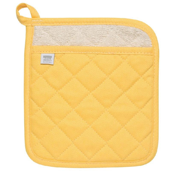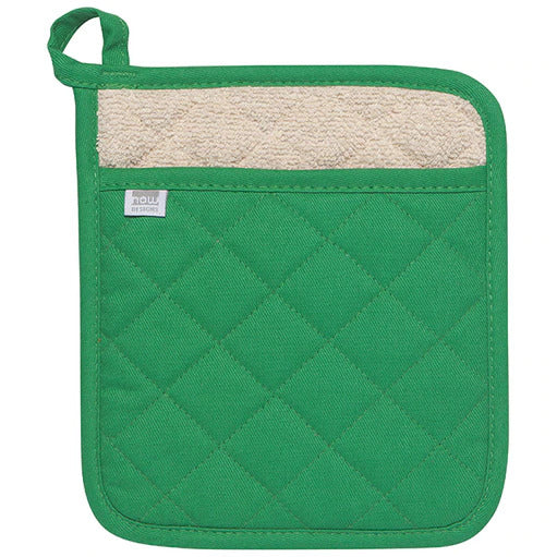 The Superior Potholder by Now Designs is thicker and heartier than a standard potholder. Each potholder features an optimal quilting pattern for ease of movement and heat protection. The hand pocket is lined with thick Terry for comfort and additional heat protection. A heavy twill binding lines the exterior and forms an integrated loop for convenient storage.