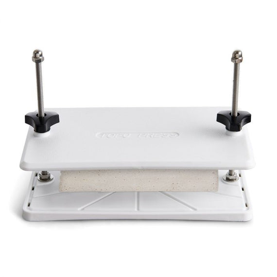 Helen's Asian Kitchen Tofu Press easily squeezes water from tofu without it breaking or crumbling apart. Pressed tofu results in an improved texture and taste. Once water has been removed, tofu acts like a sponge to absorb more flavor from dressings, marinades, and sauces. With less water content, tofu spatters less during the cooking process. The press features specially designed drain channels that help direct water away from the tofu so it doesn't get reabsorbed. It works equally well laying flat or on its side. It's super easy to use. Simply loosen the locking knobs and raise the top drainboard. Lay tofu between the drainboards and place the press onto a dish or in a pan. Tighten each locking knob equally to squeeze water out from the tofu, through the drain channels, and into the catch pan. Once desired tofu texture is achieved, follow recipe instructions. Helen Chen's Tofu Press is made from polypropylene and 18/8 stainless steel. It's easy to use and store (measures 8.5 x 5 x 6-inches). Easy one-time assembly. There's no need to disassemble for cleaning. Simply hand wash the whole press in warm, soapy water.