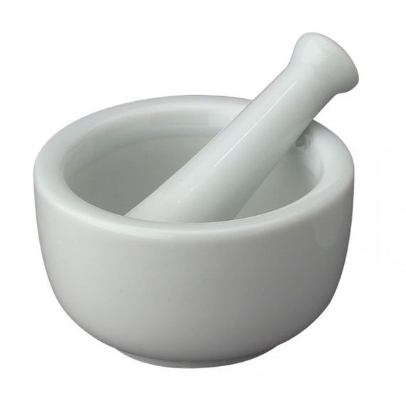 HIC Kitchen's Fine Porcelain Mortar and Pestle is the perfect set of tools to grind items into a fine paste or powder. The mortar bowls and pestles work together to grind and break down ingredients quickly to help speed up food preparation with minimum effort. Quickly grind fresh ingredients, like cloves of garlic, herbs and spices, peppercorns or cinnamon, nuts, grains, and seeds, into a fine paste or powder. Make aromatic dry rubs, curry pastes, pestos, nut butters, spreads, and so much more. Even use it as a pill crusher to pulverize harder-to-swallow pills! Essential tools for those practicing homeopathy, the art of healing through natural remedies, HIC's Mortar and Pestle Set offers effortless preparation of herbal and homeopathic remedies. So easy to use. Simply place an item into the mortar bowl. Hold the pestle by the handle and, using a firm pressure, make a circular stirring-like motion to grind your item into a paste or powder. Harder items, like peppercorns, may need the surface cracked before they can be ground. Firmly, but gently, tap the item with the pestle, then grind into the desired consistency. A tradition since 1957, HIC's fine-quality porcelain is durable, heat resistant, and free from lead and cadmium. It's safe for use in the freezer, microwave, oven, broiler (to 350-degrees Fahrenheit), and dishwasher safe for easy cleanup. Brought to you by HIC, a third-generation family owned and operated company in the USA since 1957.