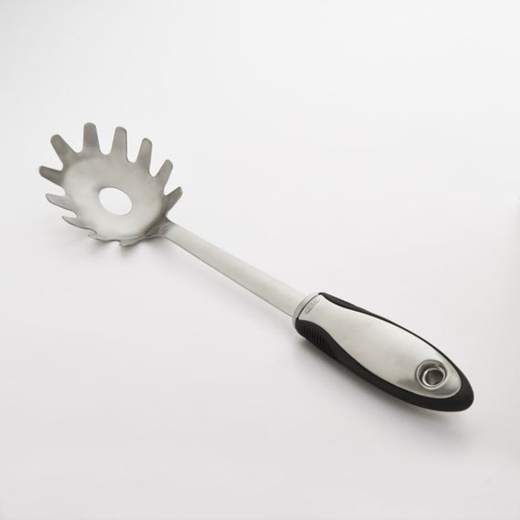 Designed to serve pasta with comfort, efficiency and style. Sleek aesthetics and ergonomic design define the OXO SteeL line of kitchen and household tools. They feature brushed stainless steel handles for durability and flexible fins for ultimate comfort..