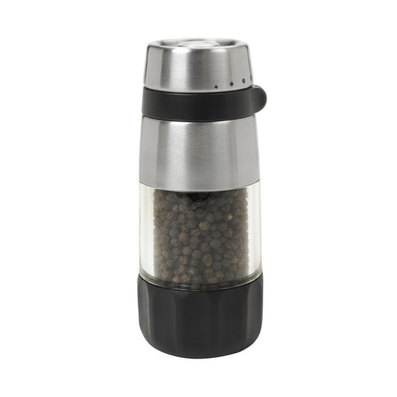 The Pepper Grinder is easily adjustable and rests flat when upside down for easy refilling. The non-corrosive ceramic grinder won't absorb flavors or odors, and is positioned at the top so it won't leave a mess on the table. The Grinder is sold filled with black peppercorns.