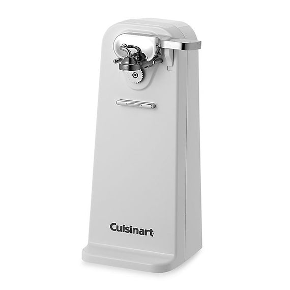 Style, convenience, and power come together in the Cuisinart electric can open. With chrome accents and elegant contours, it fits nicely with other modern countertop appliances. The easy single-touch operation effortlessly opens any standard size can. The precision Power Cut blade and strong magnetic lid holder are attached to the removable lever, which can be easily detached for quick cleanups. A stable design with a wide base for extra sturdiness and solid construction, it won't tip or slide.