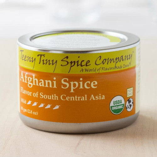 Afghani Spice is created from the spices commonly used in the cuisine of South Central Asia. It is a very flavorful and complex blend of spices, reminiscent of an Indian curry, but without the chili pepper heat popular in Southern and Eastern Asia.