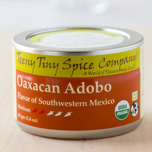 Oaxacan Adobo is a traditional chili based Mexican seasoning, fantastic as a dry spice rub or as a general spice blend. It truly shines when combined with a bit of citrus juice or vinegar to make a marinade. The flavor is a round and deep earthiness with moderate chili heat and fruitiness that will bring diners back for more.