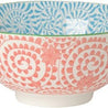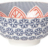 Eye-catching porcelain bowls with contrasting patterns are stunning, either as a collection or as accent pieces. Stamped designs feature bold patterns while embossed surfaces are a delight to the touch. Hand-painted rims are the final touch. Dishwasher and microwave safe.
