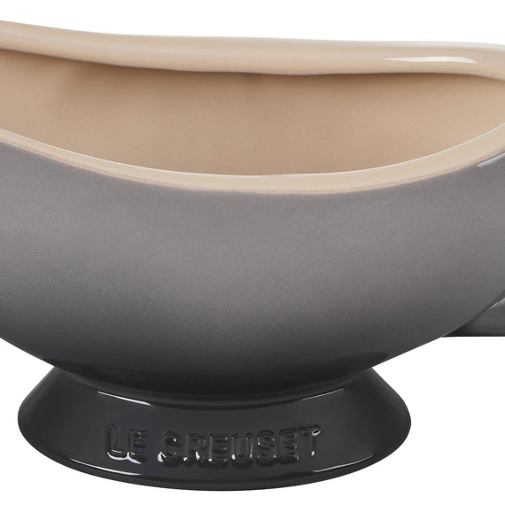 The stoneware gravy boat has a wide mouth for pouring in gravy or sauce, and the carefully-shaped pouring rim prevents drips. A comfortable handle ensures a steady grip.