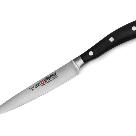 The CLASSIC IKON 6""Utility Knife is smaller than a cook’s knife but larger than a paring knife, making it the perfect knife for magnitude of tasks. A utility knife is much like a versatile paring knife and is perfect for mincing shallots, onions and herbs as well as cutting vegetables or cutting small meats.