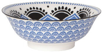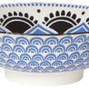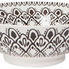 Eye-catching porcelain bowls with contrasting patterns are stunning, either as a collection or as accent pieces. Stamped designs feature bold patterns while embossed surfaces are a delight to the touch. Hand-painted rims are the final touch. Dishwasher and microwave safe.