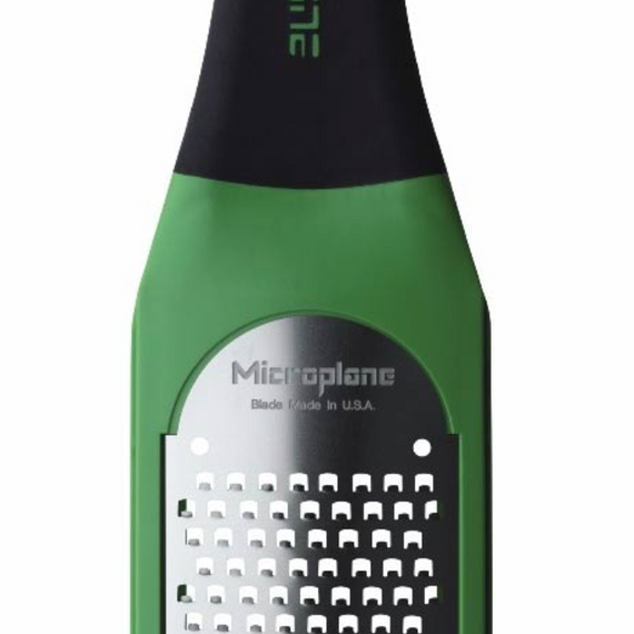 The Microplane Artisan Series is a contemporary addition to our collection of paddle-shaped Cheese Graters. The expansive surface area offers ample space to make fast work out of grating your favorite foods. The stainless steel coarse blade is favored for grating hard cheeses such as Parmesan and Romano, as well providing a wonderful grating result from Chocolate. The coarse blade also is recommended for grating carrots and coconuts. The made in USA blade has super sharp teeth to increase its efficiency. An added bonus of sharp teeth is that they do not rip or tear the food, which prevents bruising.