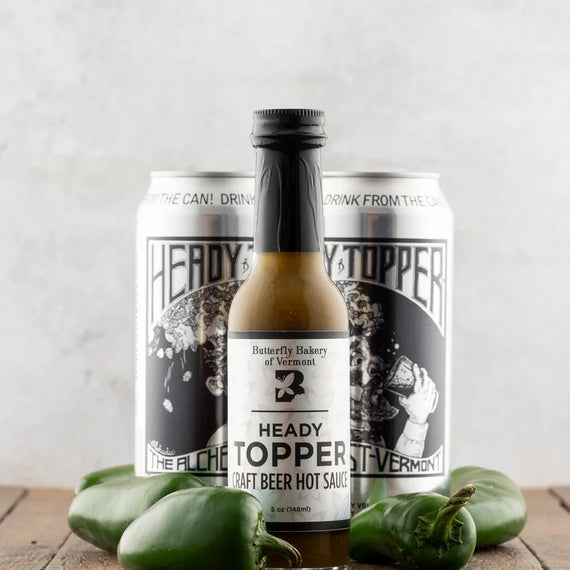 Heady Topper IPA, one of the world's best beers, is an intensely hoppy beer that makes for a lively dance with green Vermont jalapenos. This is a "use it everywhere" medium hot, craft beer hot sauce that will deliver you right up to hop heaven.