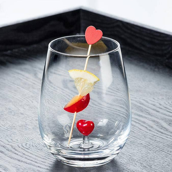 Enhance your sipping experience with our Stemless Glass featuring a heart at the bottom. The heart at the base adds a whimsical and sweet accent to the modern stemless design.