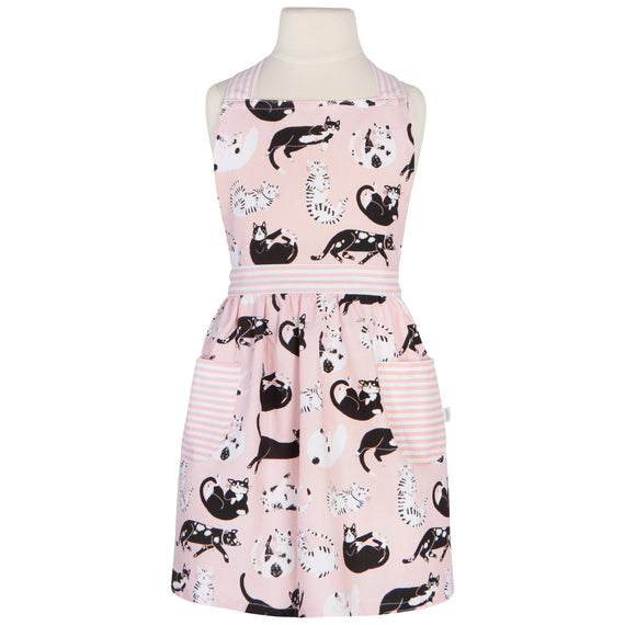 Adding a dash of whimsy and a dollop of color, this Meow & Furever Minnie apron will stir up the creative juices of any small chef.Pounce into cooking with this delightful feline design. Neutral toned stripes and patches make playful patterns on periwinkles and pinks—the purrfect companion for any kitchen.